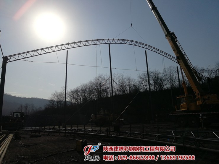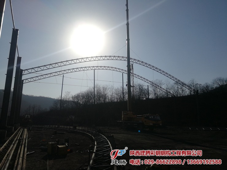 位于陜西省咸陽市旬邑縣席家山煤礦,四千多平方的鋼結(jié)構(gòu)圓弧大棚,45米超大跨度梁安裝進(jìn)行中........