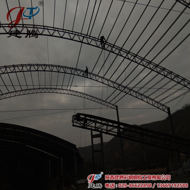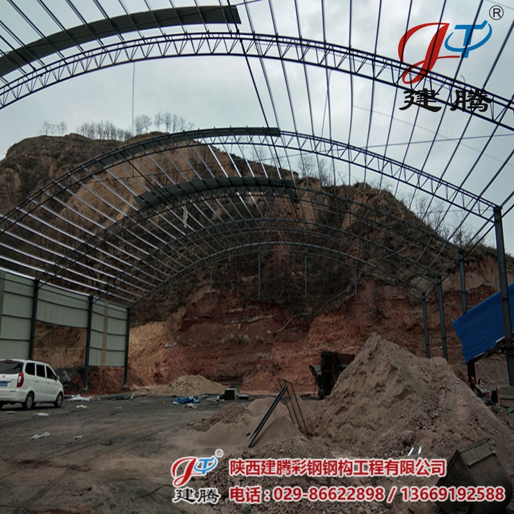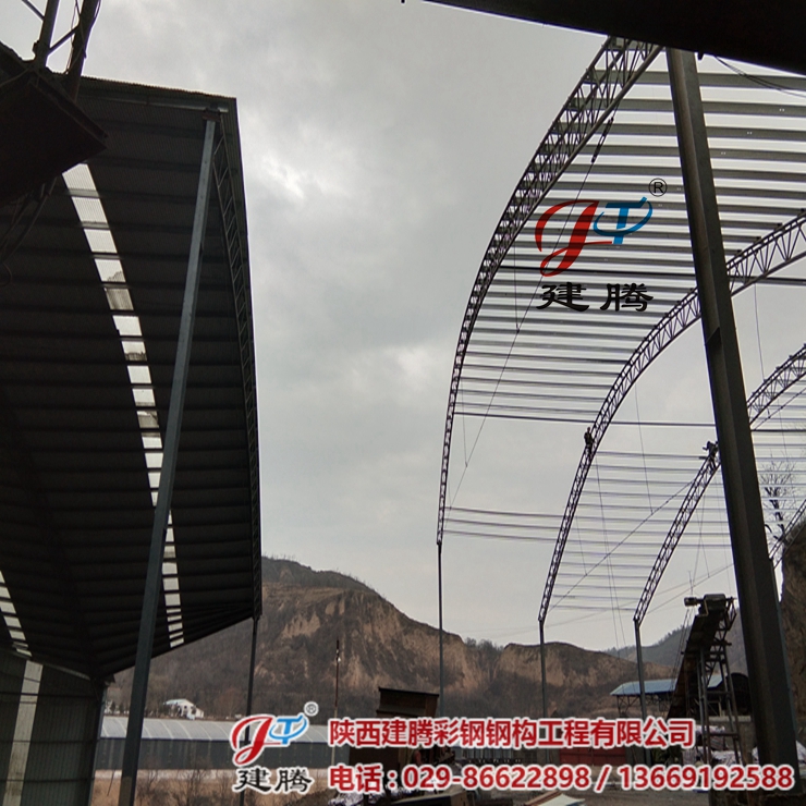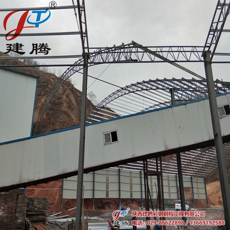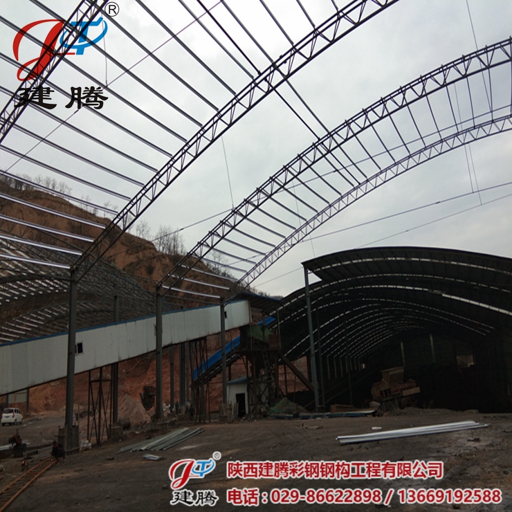 咸陽市彬縣陳家坪煤礦三期,伍千多平方的鋼結(jié)構(gòu)圓弧大棚由我公司承建,工程正在安裝中,45米超大跨度拱形圓弧大棚,現(xiàn)在工程已進(jìn)行收尾階段,已經(jīng)安裝了三分之二。