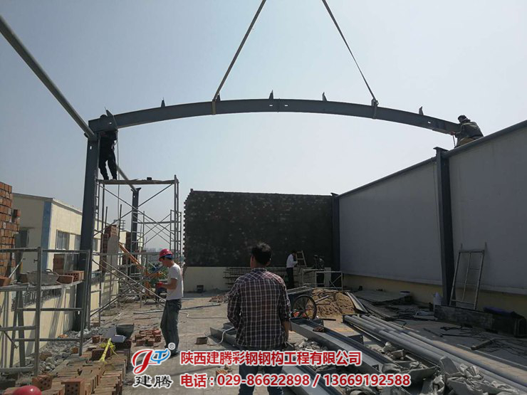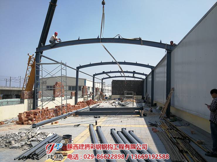 西安動車段健身房樓頂鋼結(jié)構(gòu)工程由我公司承建,五一假期臨近,我司作業(yè)人員,克服高空作業(yè),場地,天氣等問題,依然堅(jiān)守崗位,以廠為家,兢兢業(yè)業(yè),任勞任怨,爭取提前竣工。