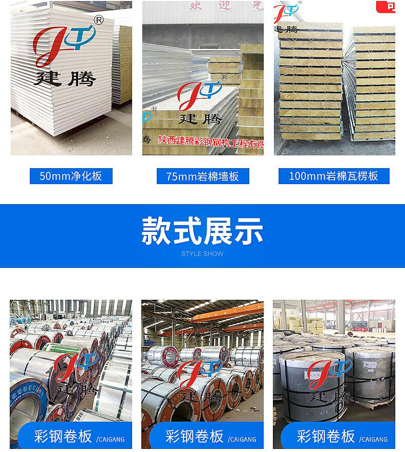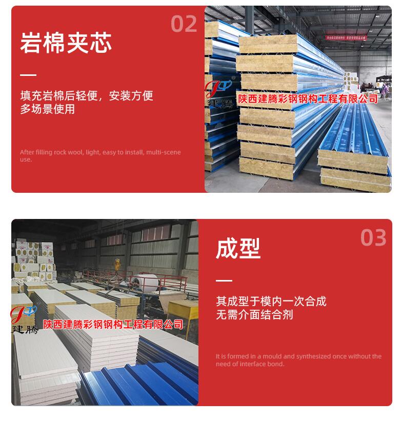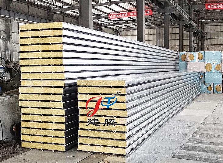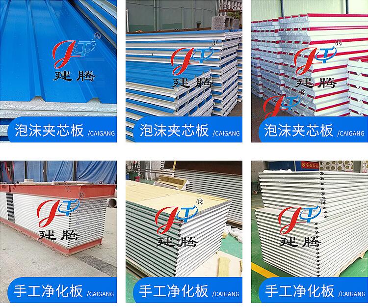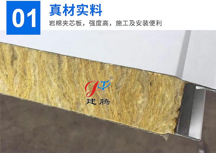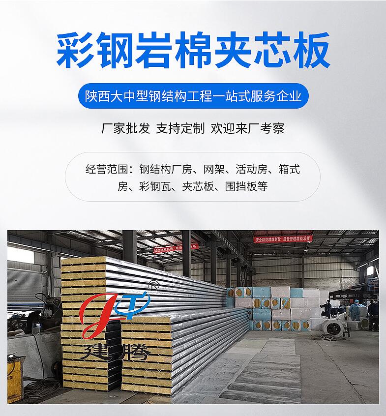巖棉夾芯板 寬度<950mm1150mm,長(zhǎng)度160000mm可根據(jù)設(shè)計(jì)要求及運(yùn)輸安裝條件確定。 2)厚度:50mm 75mm 100mm 【面材】 上/下0.3~0.6mm彩色涂層鋼板(鍍鋅板、不銹鋼板、防靜彩色涂層鋼板)